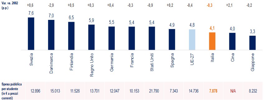Qualche numero. I giovani laureati italiani sono solo il 29,2% del totale posizionando l’Italia al penultimo posto nell’Unione Europea, generando un gap di 2,5 milioni posizioni lavorative non coperte (per un costo complessivo stimato di 43,9 miliardi l’anno).
