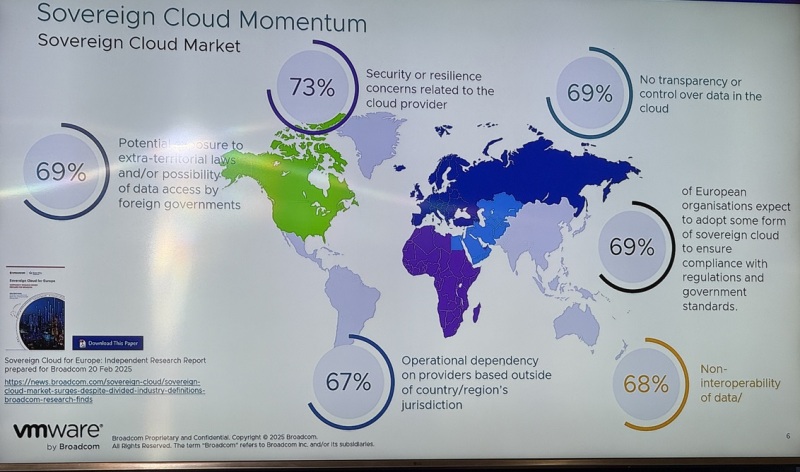 Parigi lascia lo spazio infine per il confronto con Mario Derba, managing director Italia e Area sales lead Iberia & Italia di Broadcom e Claudia Angelelli, manager Solution Engineering di Broadcom, vicini al contesto italiano, che affrontano i nodi più concreti della trasformazione in atto, evidenziando come l’equilibrio tra public e private cloud stia ormai ridefinendo le strategie infrastrutturali delle imprese. Derba ricorda che “il ritorno dell’on-premise non significa un passo indietro, ma la presa di consapevolezza che costi, sicurezza e compliance non viaggiano sempre insieme nel cloud pubblico”. Le aziende, ha spiegato, “stanno riscoprendo il valore del controllo, anche alla luce della nuova ondata di workload legati all’intelligenza artificiale, che impongono capacità di elaborazione dedicate e una gestione attenta della sovranità dei dati”.